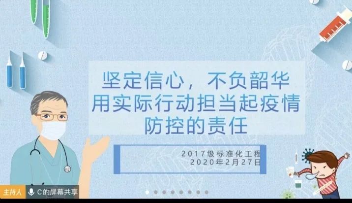 2020年2月27日,质量与标准化学院2017级同学通过腾讯会议平台开展了一次别开生面的“网络班会”。此次班会由班长崔资浩主持,主题为“坚定信心,不负韶华,用实际行动担当起疫情防控的责任”。