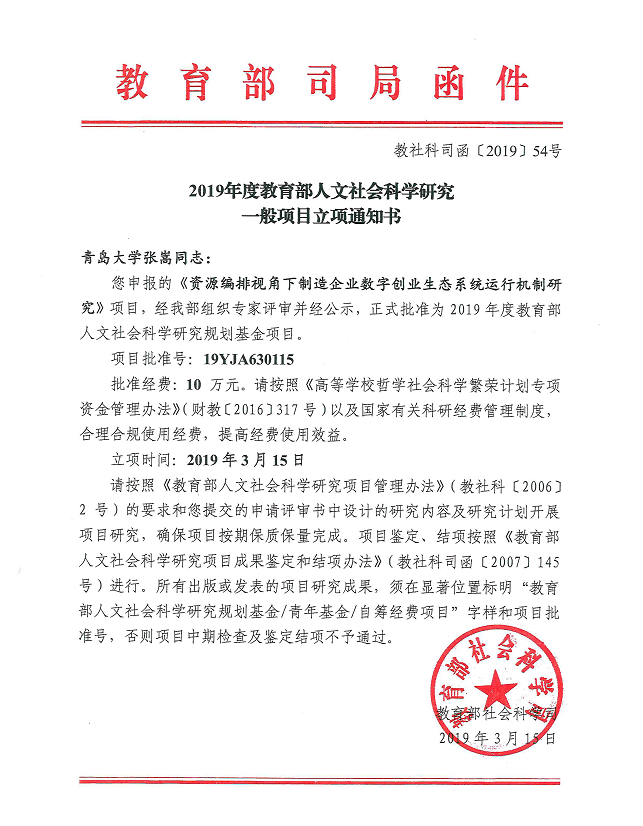 【省部级纵向课题部委项目】教育部人文社科研究规划基金项目