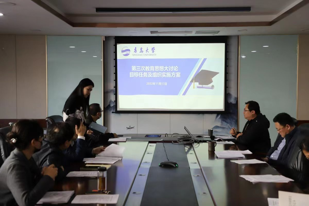 会上,本科办主任杨金龙介绍了《青岛大学“十四五”人才培养改革方案》、《普通高等学校本科教育教学审核评估实施方案(2021—2025年)》等材料,并结合学院本科教育教学发展现状,对标学校“十四五”人才培养改革目标和本科教育教学审核评估指标体系,找出学院在本科教育教学方面存在的差距以及可行的改善措施。