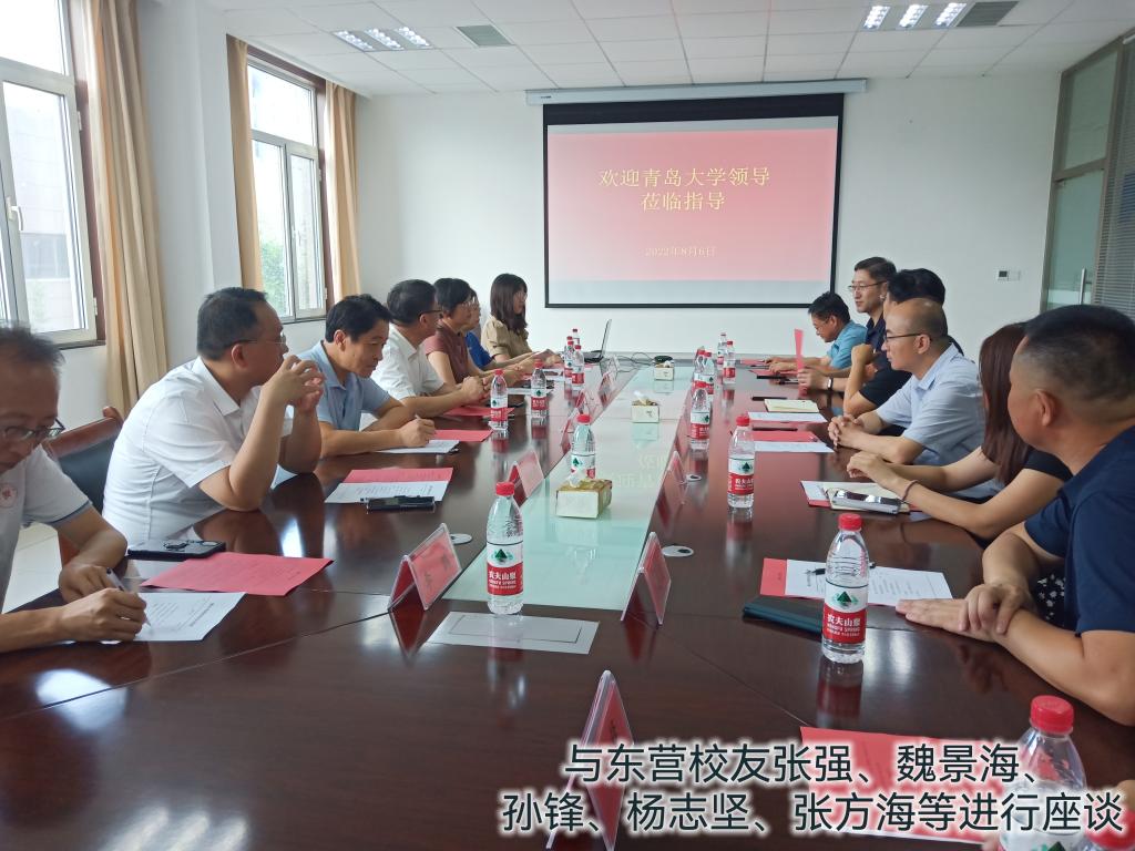 王功勇一行先后走访了山东新和盛食品有限公司、北京现代农业研究院、富维薄膜(山东)有限公司、天兴生物科技有限公司、天兴置业、青岛大学东营研究院、东营北晟股份有限公司等。座谈会上,校友们对母校老师表示欢迎,并分别介绍了潍坊、邹平、滨州、东营地区的发展以及校友所在企业的基本情况。校友代表畅谈了自己在母校的求学往事,表达了对母校和老师的感激之情,汇报了对校友工作的思考和打算。校友们纷纷表示,要继续传承和弘扬青大精神,做好本职工作,为母校增光添彩。