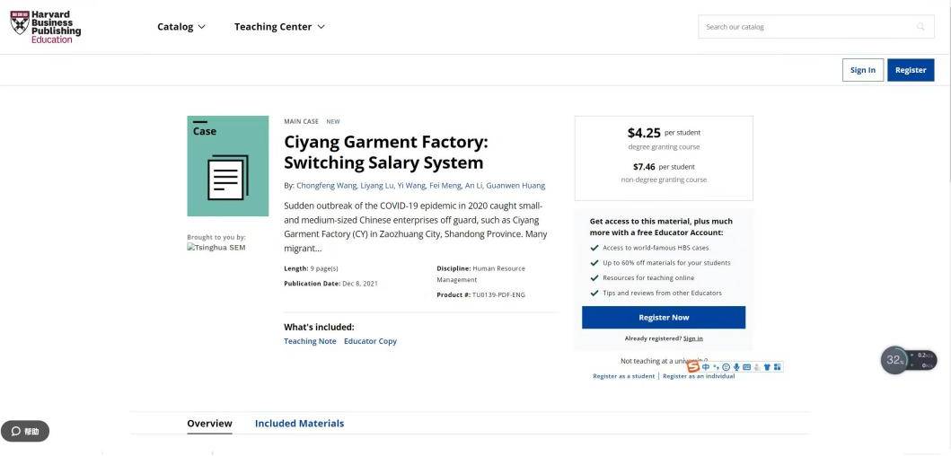 会计学系教授、硕士生导师王崇锋老师与清华大学经济管理学院王毅教授、清华大学经济管理学院中国工商管理案例中心研究员孟菲老师合作的教学案例《Ciyang Garment Factory:Switching Salary System》被哈佛案例库(Harvard Business Publishing)正式收录,成为群p