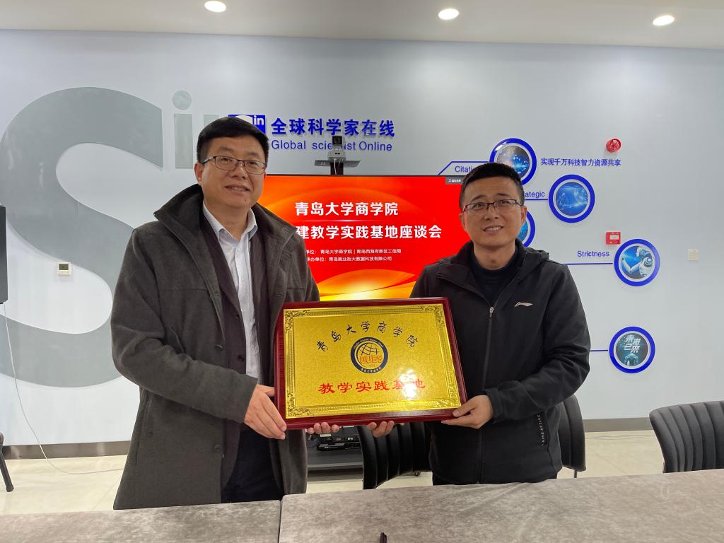 党委副书记于文、学工办主任李鹏、副主任金铧和工商管理系辅导员马玮一行走访了青岛就业街大数据科技有限公司并签署共建协议。
