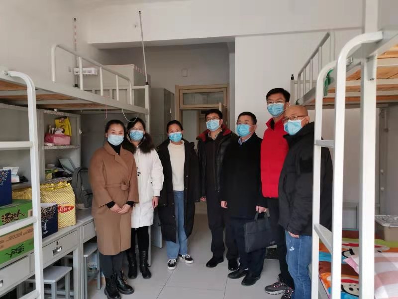 王庆金、于文一行首先来到浩园宿舍楼,看望因疫情滞留学校的群p