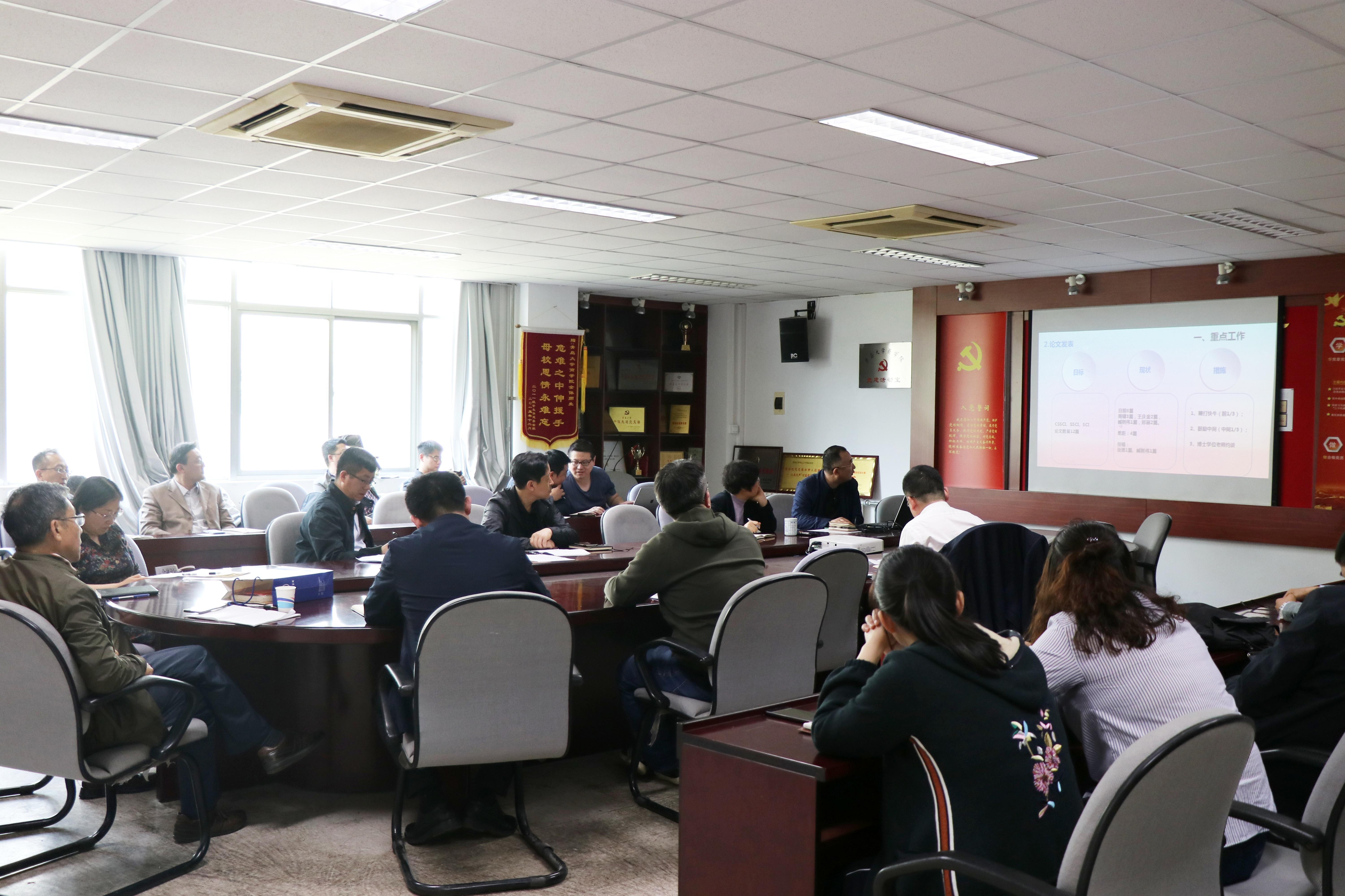 在金家岭校区办公楼310会议室,召开2019年度重点工作进展调度交流会,总结目标任务书及学院工作要点下达以来,各系、中心工作开展情况,研讨交流下一步工作开展。党委书记王功勇主持会议并讲话。