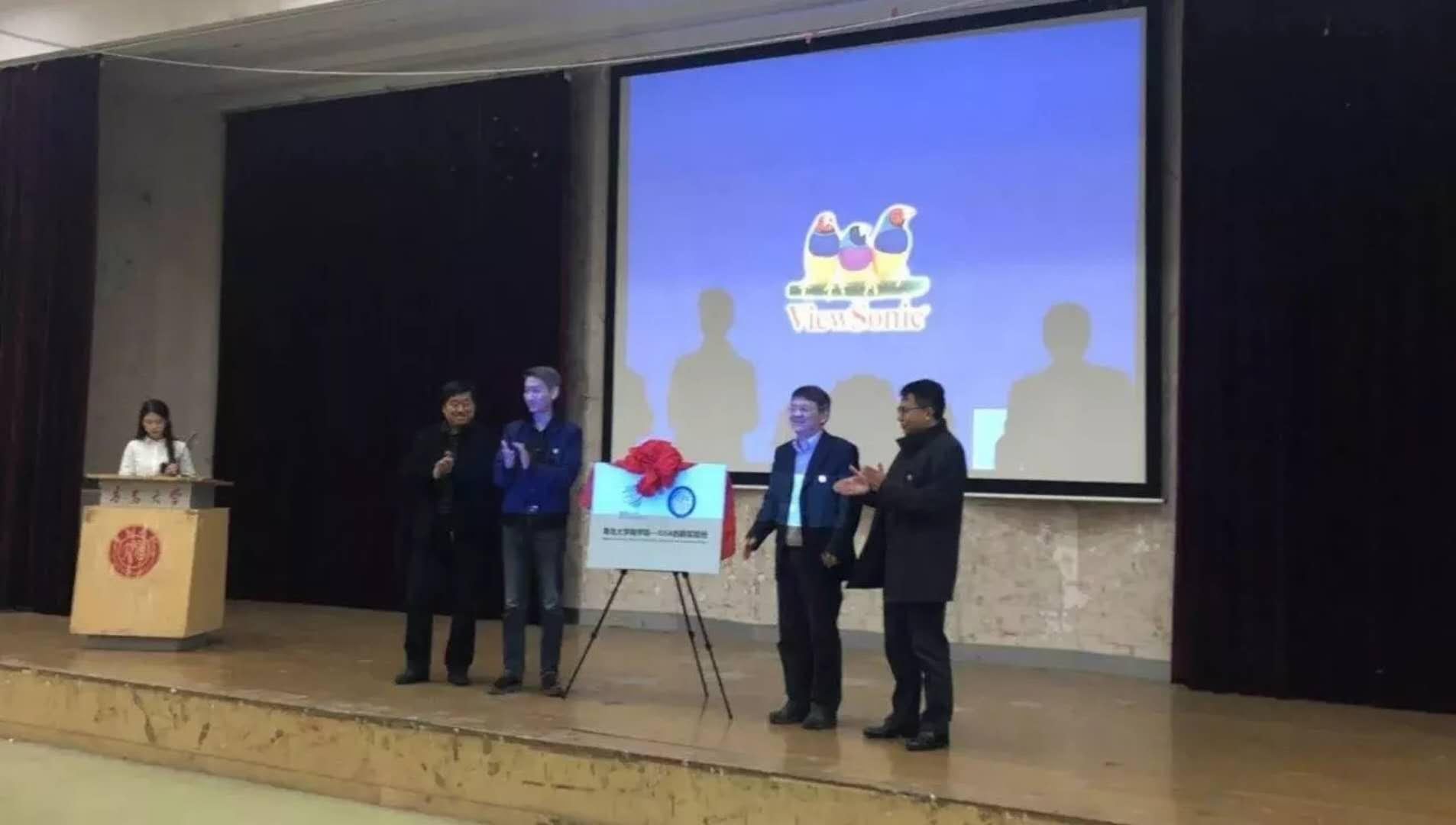 吴世珍、管永建、曲绍阳、闫昶德共同为青岛大学商学院—IUIA创新实验班的启动揭牌。群p