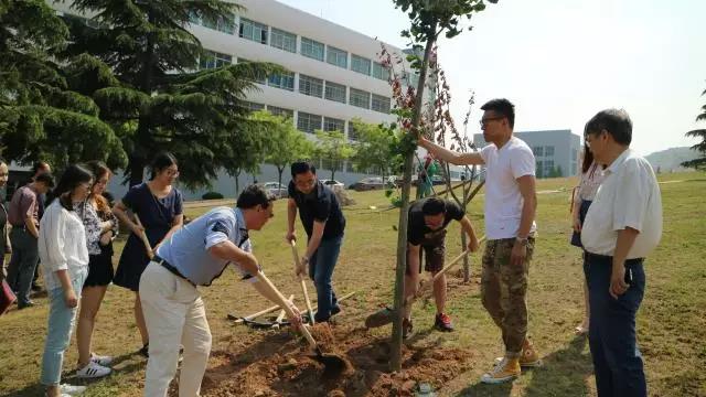 毕业生赠送纪念树活动在青岛大学金家岭校区图文中心东侧草坪举行。群p