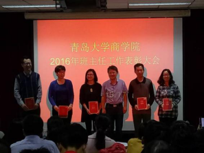 关于表彰2015-2016学年优秀班主任的决定》,然后14位优秀班主任依次走上主席台领奖。随后,优秀班主任代表工商系刘玉石老师和市场学系朱礼华老师分别在会上作了交流发言。刘玉石老师自费走访了省内外二十多个所带班的学生家庭;朱礼华老师带领班级去众多大型超市召开现场主题班会。刘老师、朱老师的带有爱心的精细化的带班经验值得所有班主任学习。