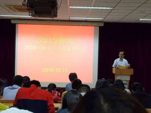 在东校区图文三报告厅举行2015-2016学年班主任表彰大会。学院党政领导出席会议,2015级、2016级全体班主任、辅导员以及2016新生班长、团支书参加了会议。