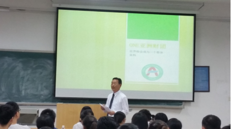 市场学系徐哲根老师邀请,ONE亚洲基金会理事长佐藤洋治先生在金家岭校区1教301教室为师生做《亚洲共同体理念的哲学思考》专题讲座。市场学系副主任王海宁、张军莉老师、李苗苗老师、朱礼华老师等出席了此次讲座。讲座分为佐藤先生的个人宣讲和优秀学生奖状颁发两部分。