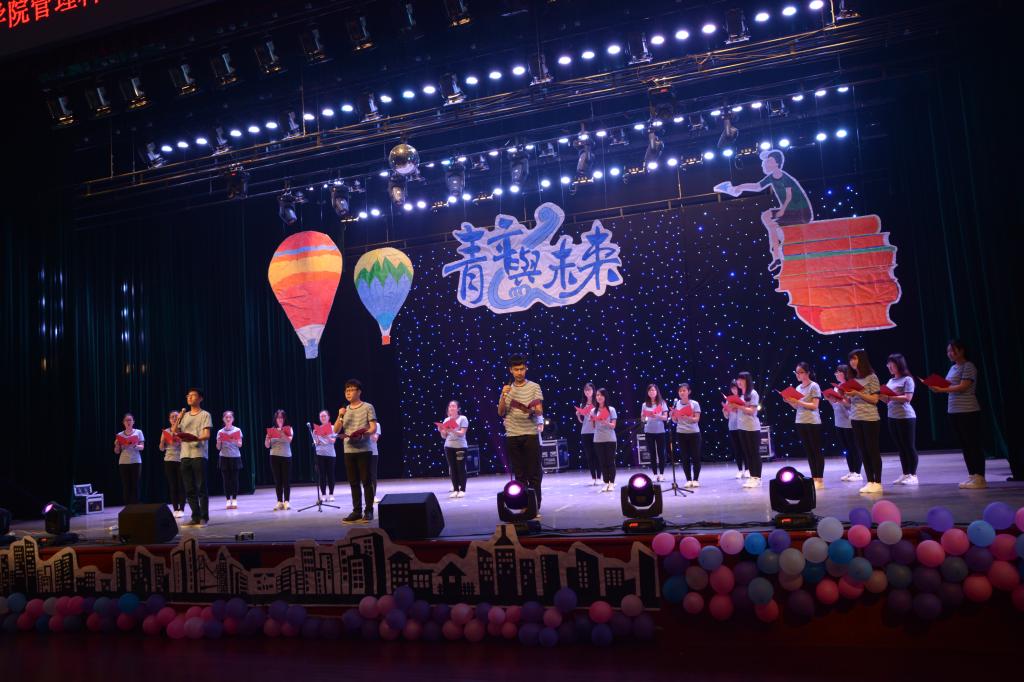 团委主办、管理科学与工程系学生会承办的“2016青年与未来——青年之夜朗诵风采展示典”在青岛大学剧院上演。群p