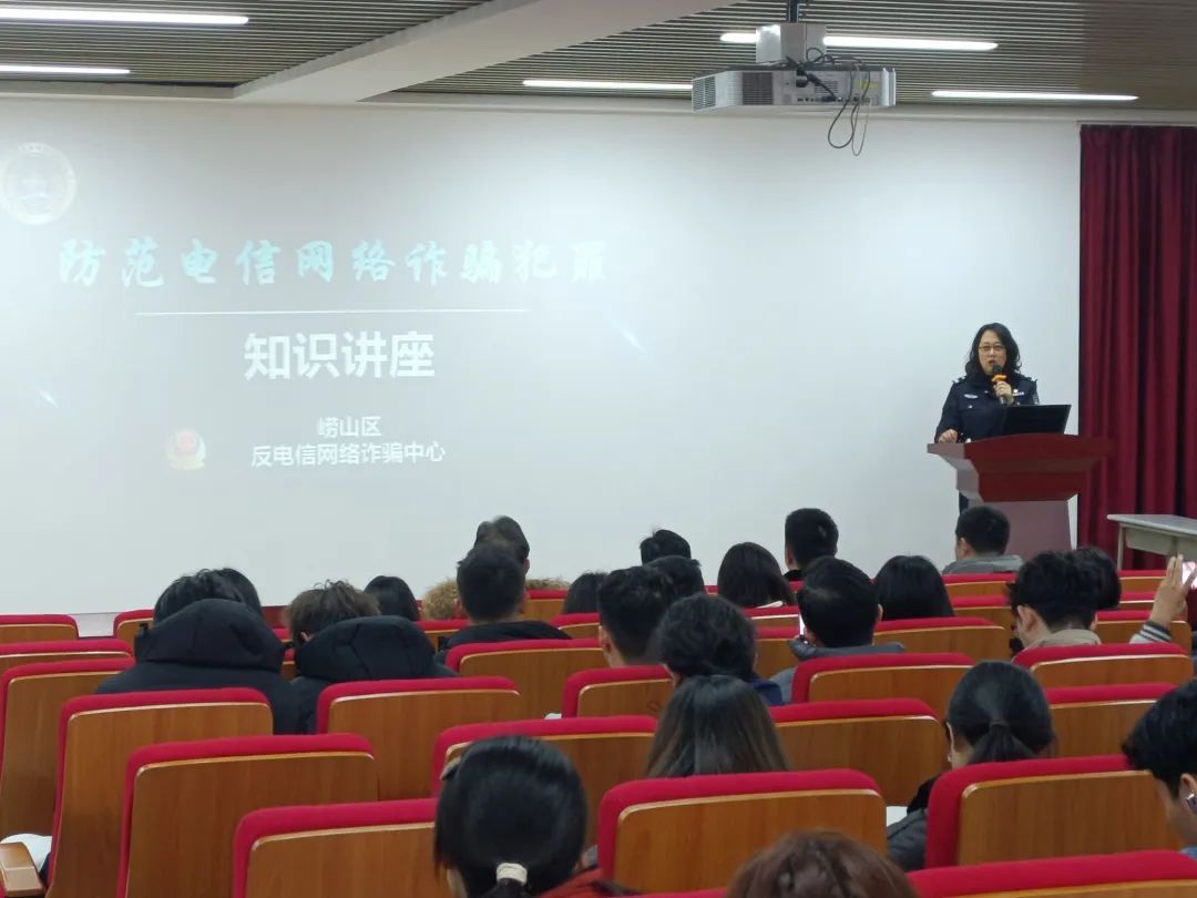 特邀青岛市公安局崂山区反电信网络诈骗中心的警官,在图文中心三楼报告厅开展了一场生动且意义非凡的反电诈宣讲会。