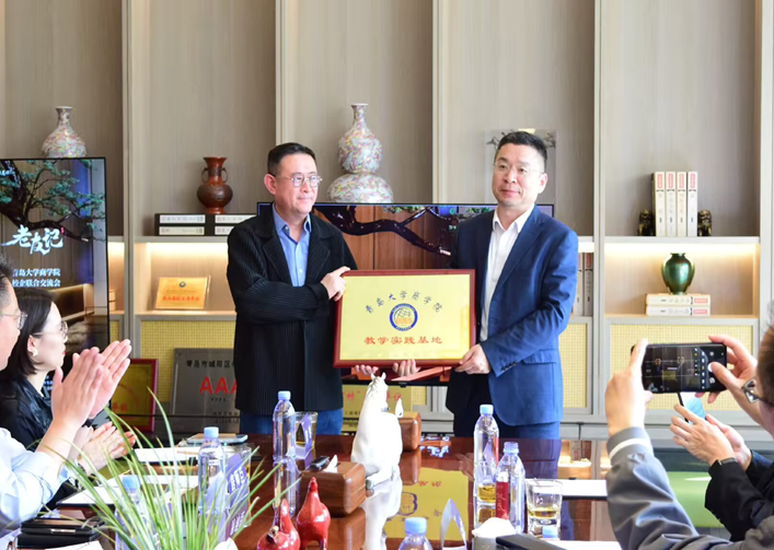 在战略合作仪式环节,学院为青特置业授予教学实践基地牌匾,并为青特置业副总经理王志庆颁发MBA导师聘书。此次授牌聘任,标志着双方合作迈入规范化、长效化发展新阶段,为后续实践教学、课题研究、人才共育搭建起长效合作平台。