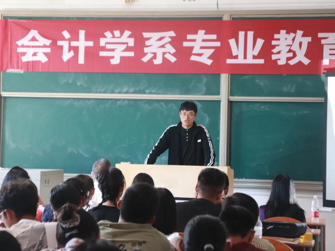 会计学系主任范英杰老师、副主任鲍在山和康进军三位老师介绍了专业设置及培养目标,展示了本专业的师资力量和科研成果,同时也展示了考研率和就业率,鼓励大家积极考研,继续深造。