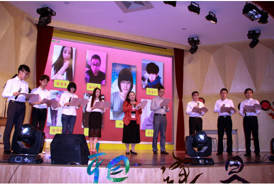 抽奖环节之后,晚会第二幕“相伴•那年青春”开始了。一首《时间煮雨》又加深了心中那爱情、友情的轮廓,随后,由陈鑫老师、孙建华老师及大四各班代表带来的朗诵《再忆起》以温暖又略带伤感的语调感动着同学们,浓浓师生情,此生不忘!