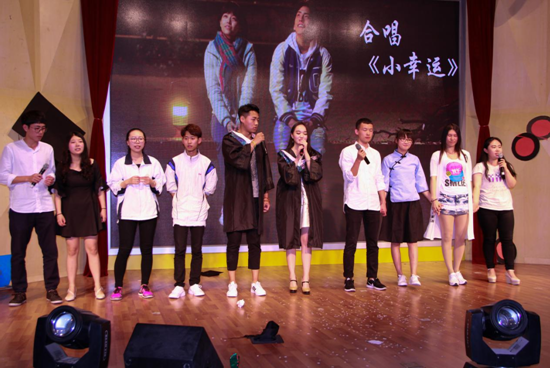 首先,由学生会文艺部带来的歌曲《红日》充满激情,点燃全场。我们大学生就像那红日,火红映人,毕业后的我们更要像红日,散发光芒,照耀四方。