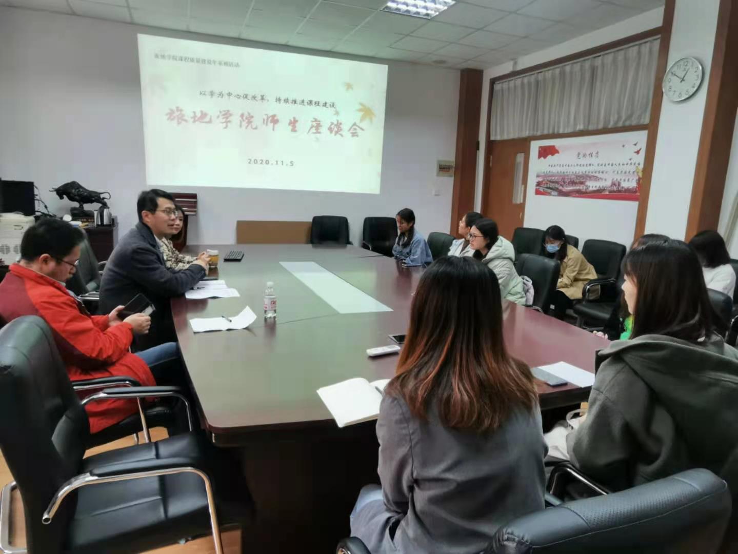 为推进学院学风建设,更加直接地了解学生学习情况和对学院教学工作的意见和建议,11月5日中午,旅游与地理科学学院于睿思楼会议室举行了主题为“以学为中心促改革,持续推进课程建设”的师生座谈会。学院副院长耿庆汇,院长助理、旅游与会展管理系主任赵玉宗,学院党委副书记于苗出席本次座谈会,学院各班学生代表参加会议。耿庆汇主持会议。