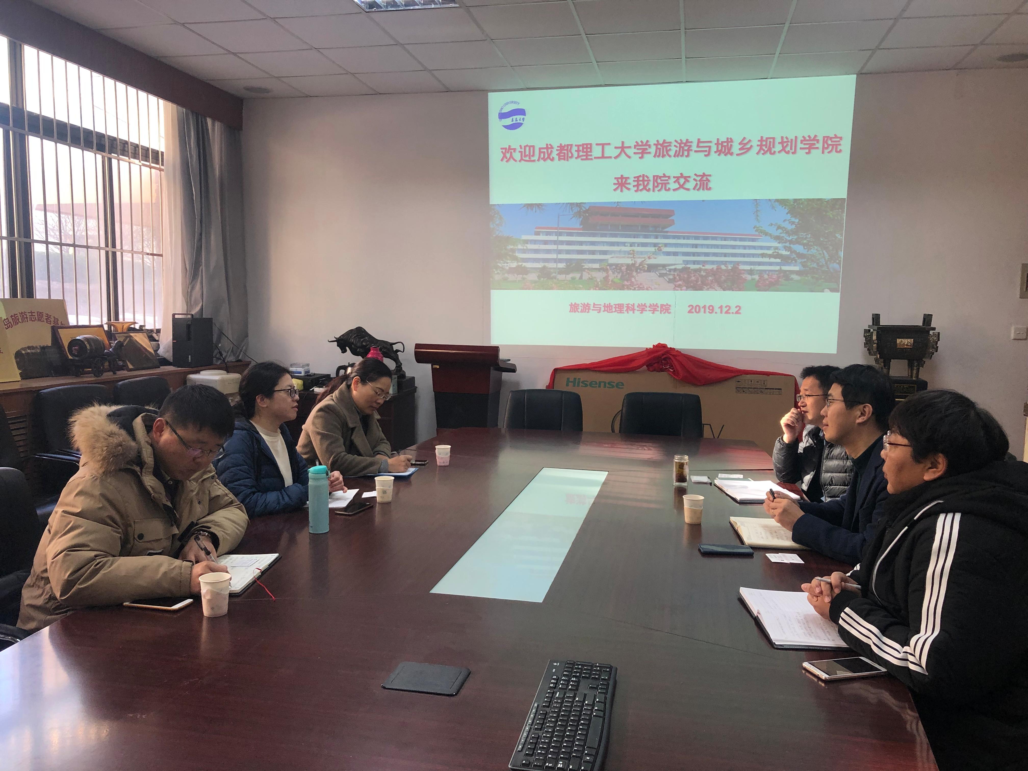 12月2日上午,成都理工大学旅游与城乡规划学院旅游开发与管理系主任李晓琴一行3人到我院考察交流。副院长耿庆汇、院长助理、旅游与会展管理系主任赵玉宗、教科办主任蒋敏之参加座谈交流会。双方围绕旅游管理专业建设、专业培养方案、专业实习实践及UNWTO-TedQual认证等开展了广泛探讨和交流。
