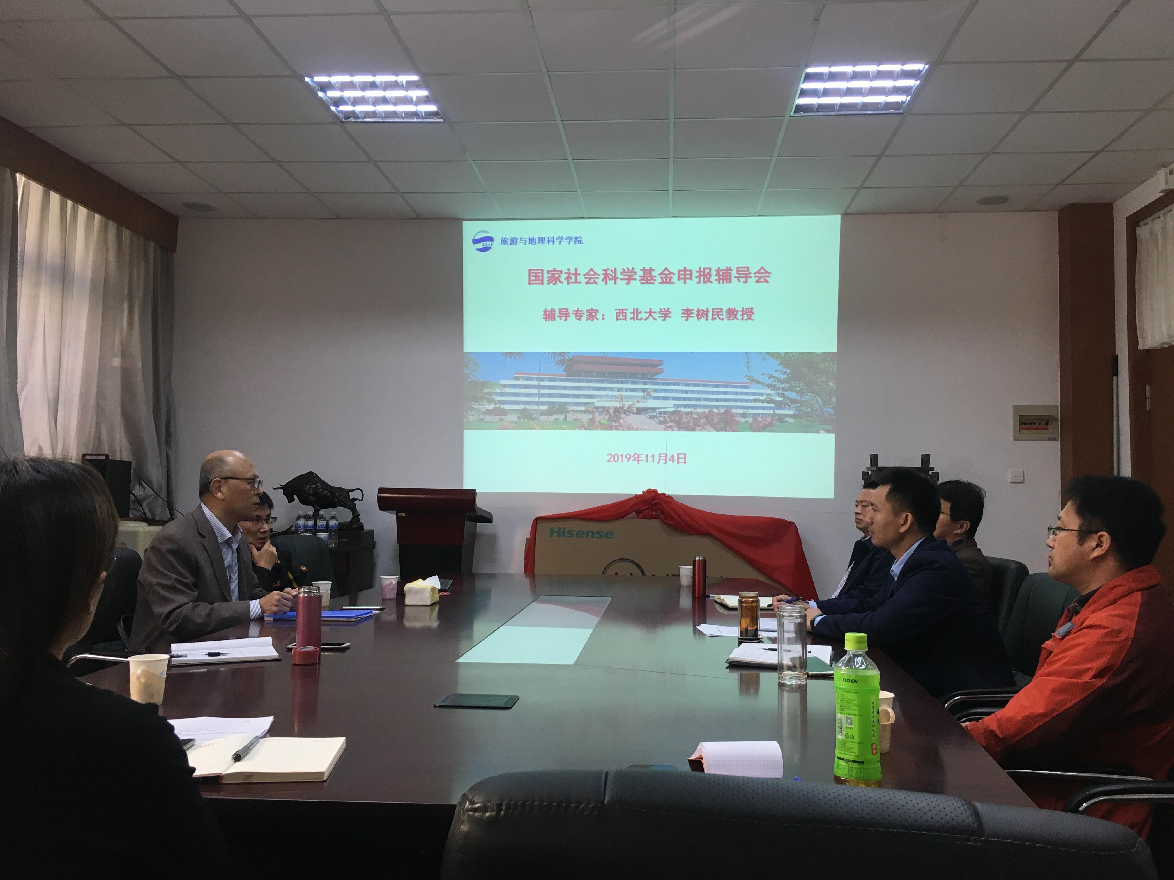2019年11月4日上午9点,旅游与地理科学学院在睿思楼122会议室举办国家社科基金申报辅导会。本次辅导会邀请了国家社科基金会评专家、西北大学李树民教授,会议由张言庆副院长主持。