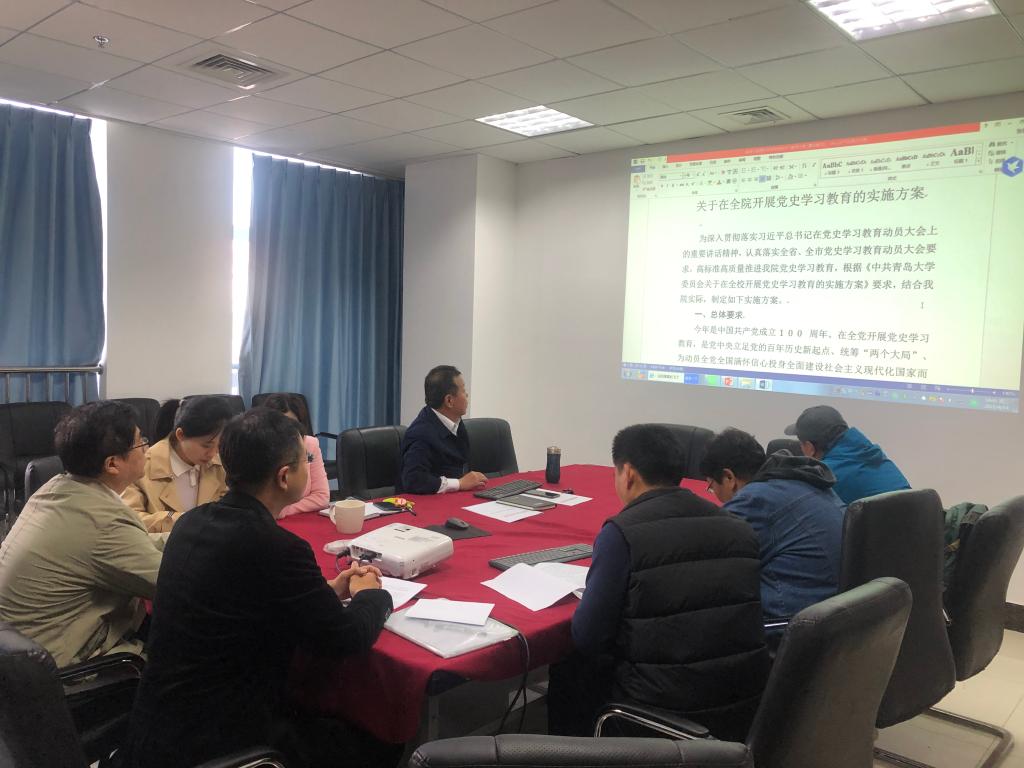 学院党委书记刘善东带领大家共同学习了《中国共产党青岛大学旅游与地理科学学院委员会关于在全院开展党史学习教育的实施方案》。学院广大党员充分认识到,在全党开展党史学习教育,是党中央立足党的百年历史新起点、统筹中华民族伟大复兴战略全局和世界百年未有之大变局、为动员全党全国满怀信心投身全面建设社会主义现代化国家做出的重大决策。广大党员纷纷表示,一定要充分认识开展党史教育的重大意义,统一思想,牢固树立“四个意识”,坚定“四个自信”,做到“两个维护”;要结合岗位履职尽责,带头学习党史,进一步学原理、读原著,以优异成绩向建党百年献礼。